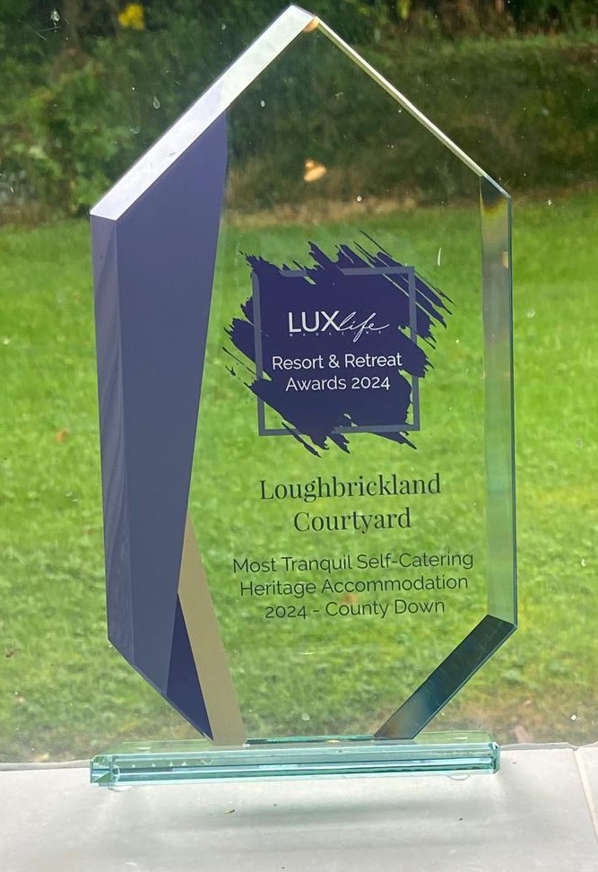 Our accommodation won the Lux Life Resorts and Retreats Award for Best Self-Catering in County Down in 2020 (Lisnagade), 2021 (Coolnacran), 2022 (both cottages), and 2023 (Lisnagade). In 2024, we won the Most Tranquil Self-Catering Holiday Accommodation award.